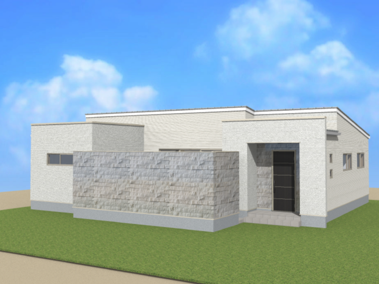 ホワイトの外壁と豊かな植栽のグリーンの映える平屋建て!
