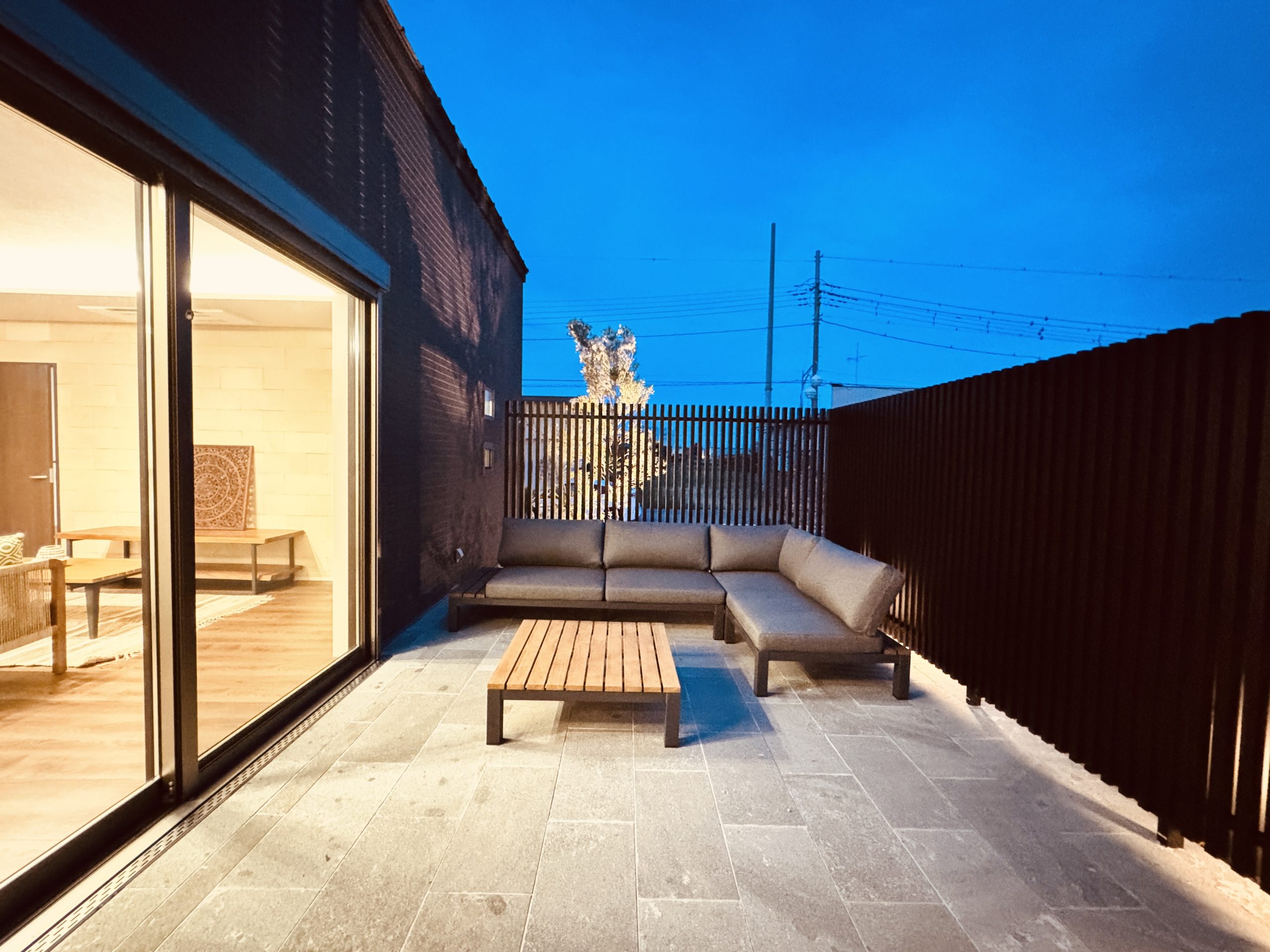 管理が大変な広いお庭ではなく、家具を置いてゆったり過ごせる