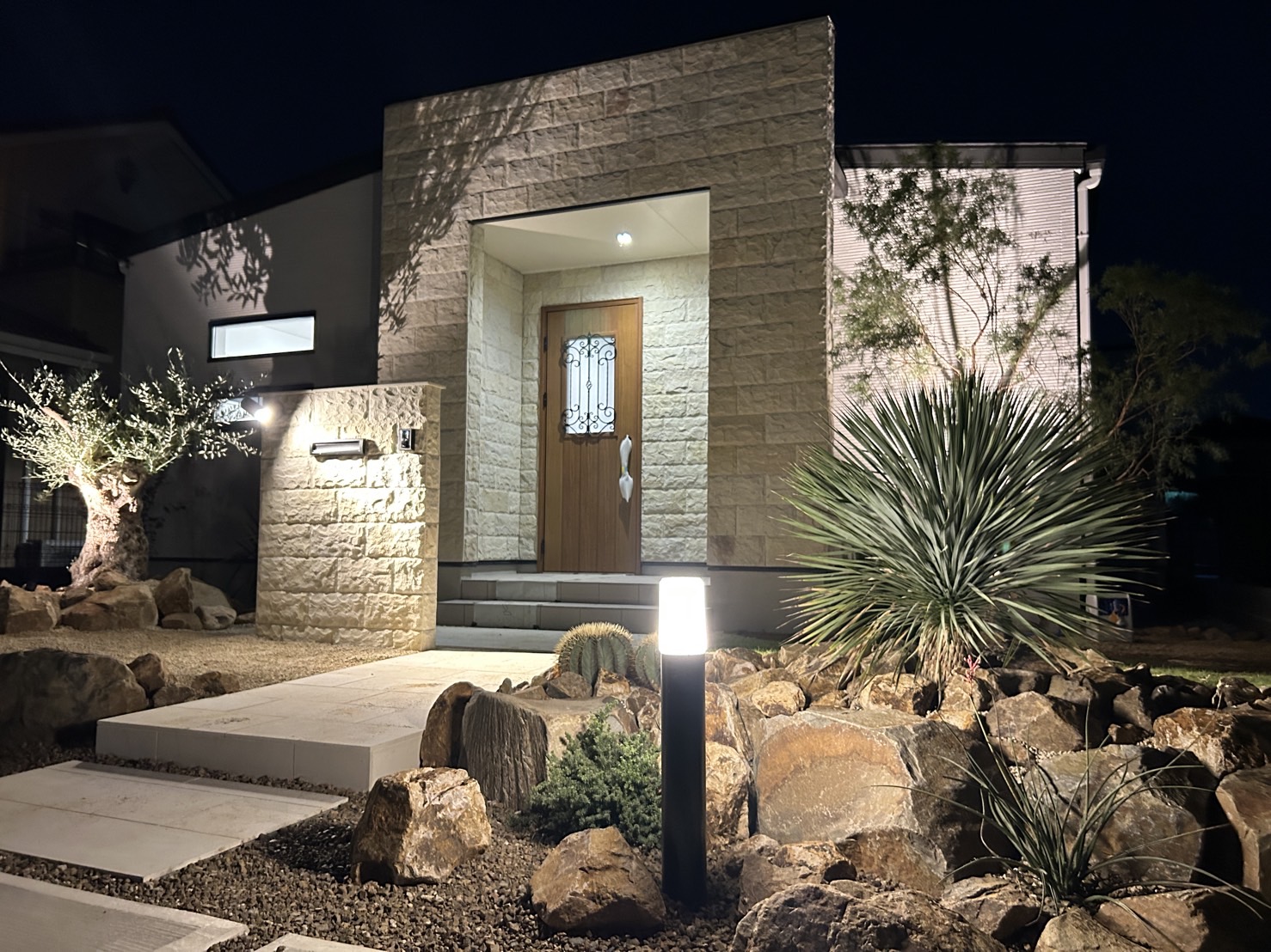 玄関アプローチに足を踏み入れた瞬間、そこには日常から切り離された異国情緒あふれるリゾートの演出が広がります。