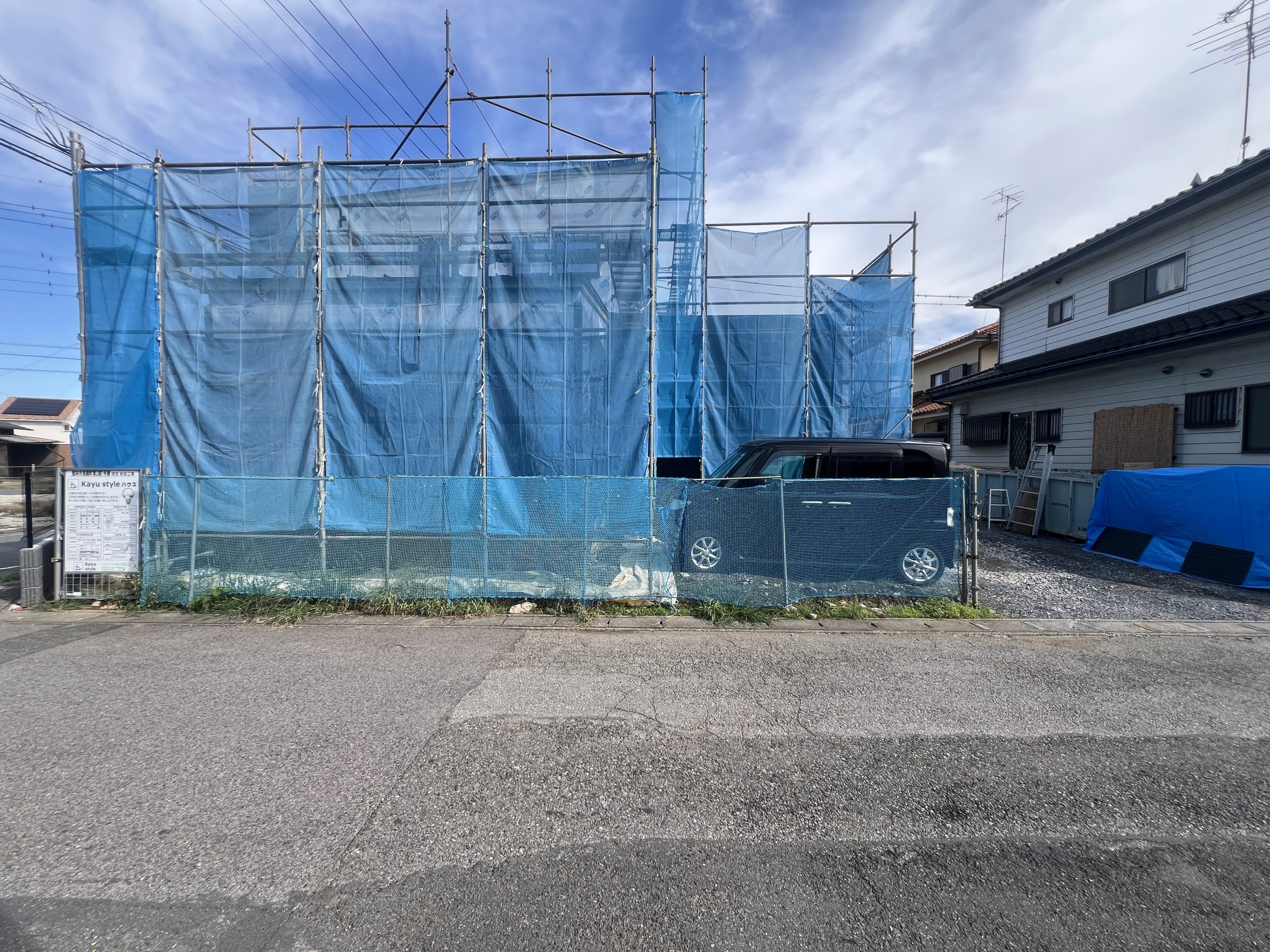 見せタル木のある勾配天井の17.5帖のLDKは、おしゃれでモダンな空間です!テラスとフラットに繋がり、ゆったりと心地良くお過ごしになれます。通路とリビングから出入りできるテラスは、目隠し壁で囲われていて外からの視線が気にならないプライベート空間になっております。扉がついているので、テラスから外にも行くことが可能です。玄関ホールの通路は吹抜けになっている為、明るく開放的!キッチン裏の水回りから、階段を中心に回遊できるので家事動線も良好です!
