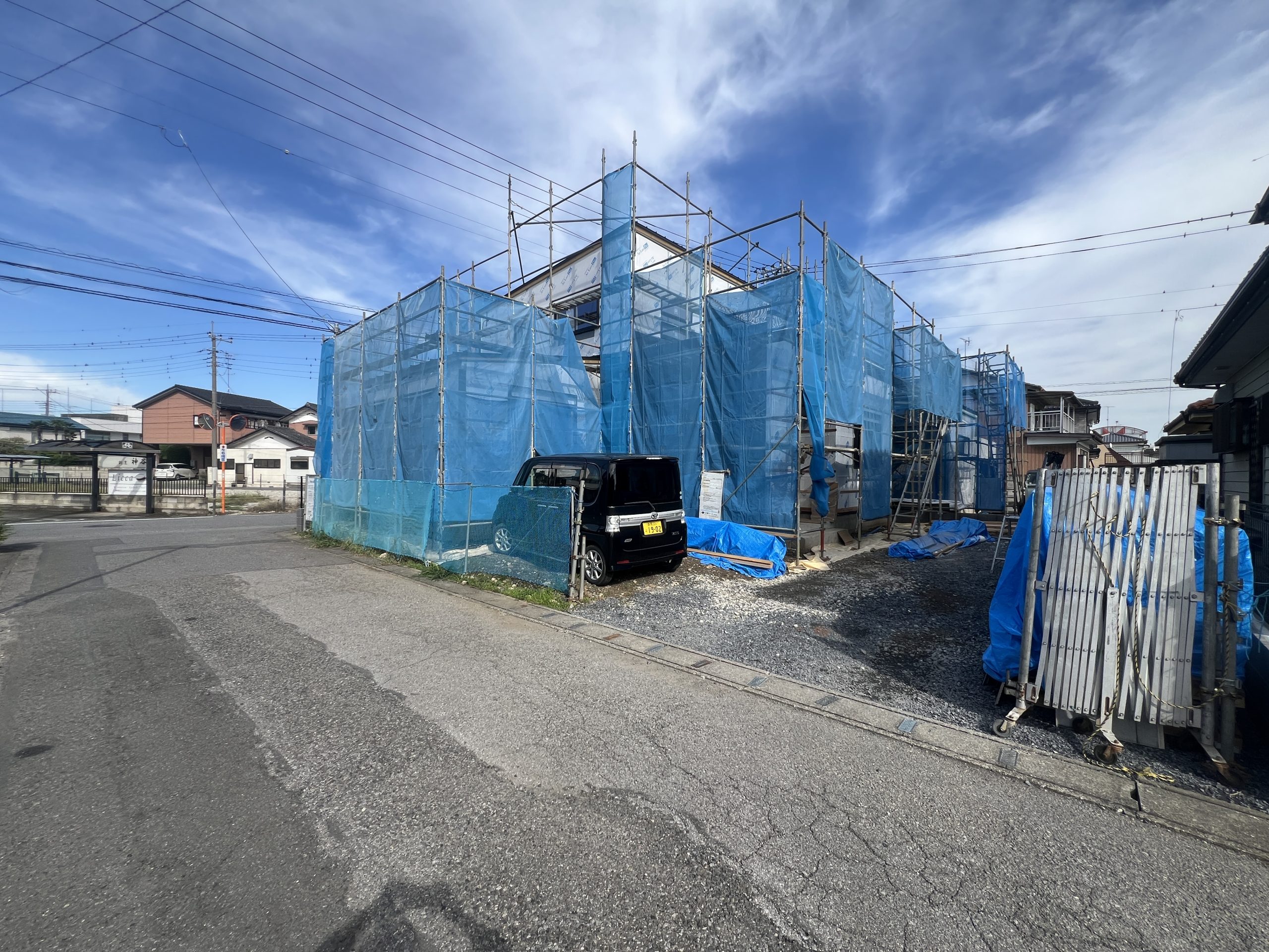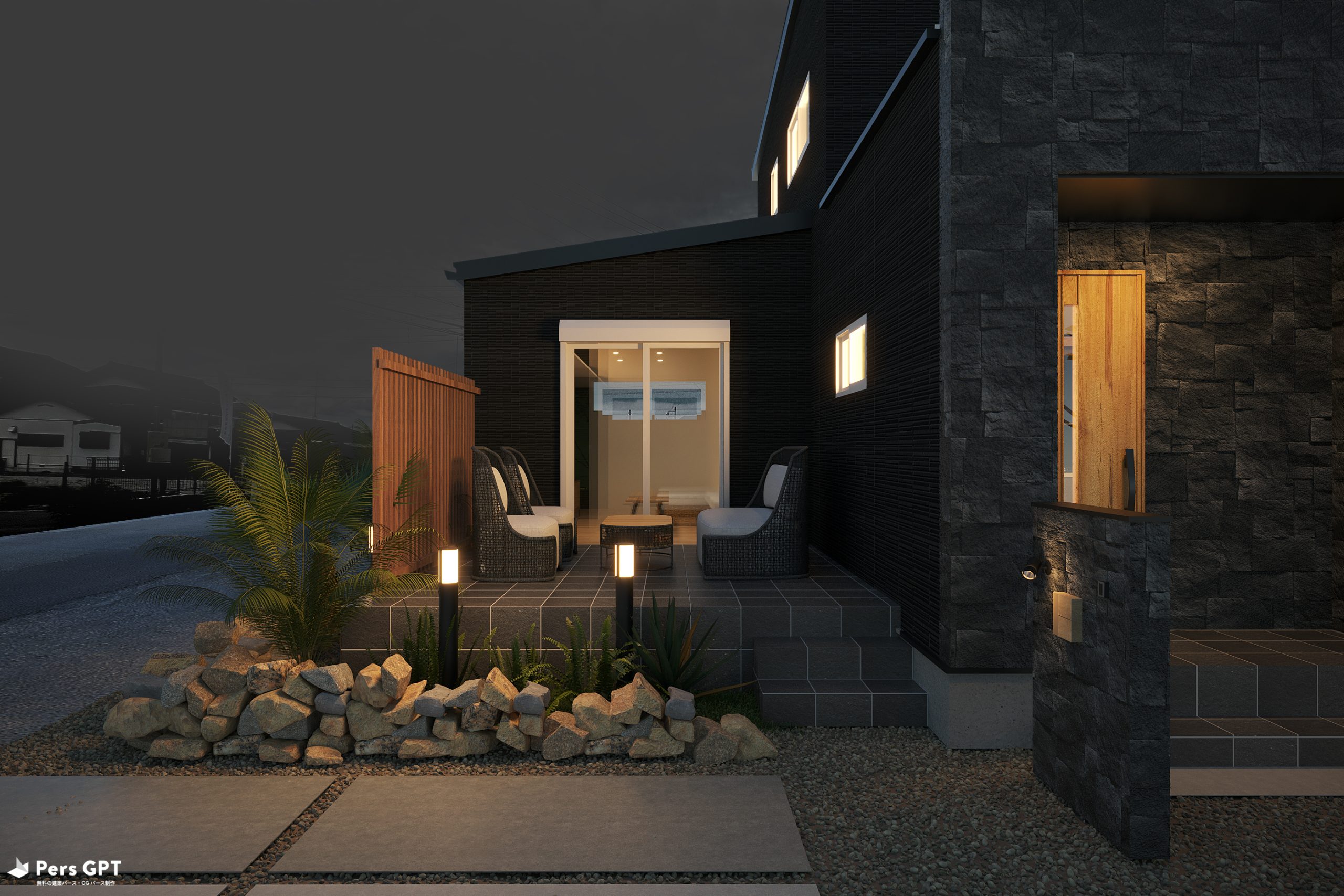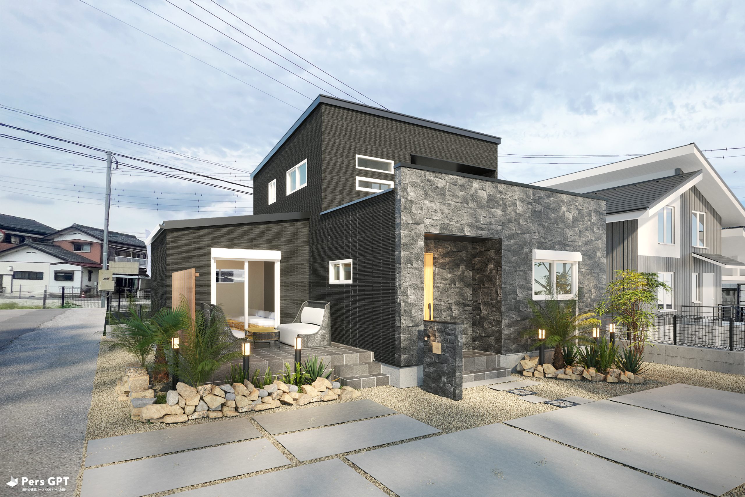西側の黒い重厚な2階建てはアーバンモダンなデザイン!