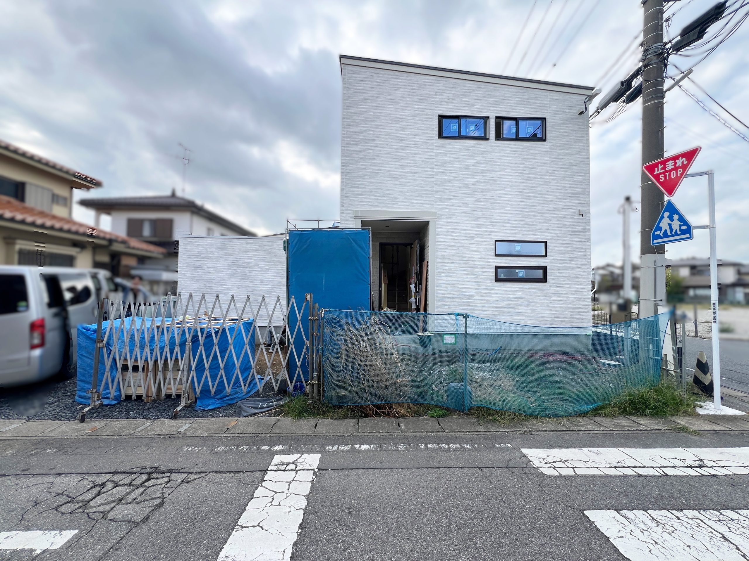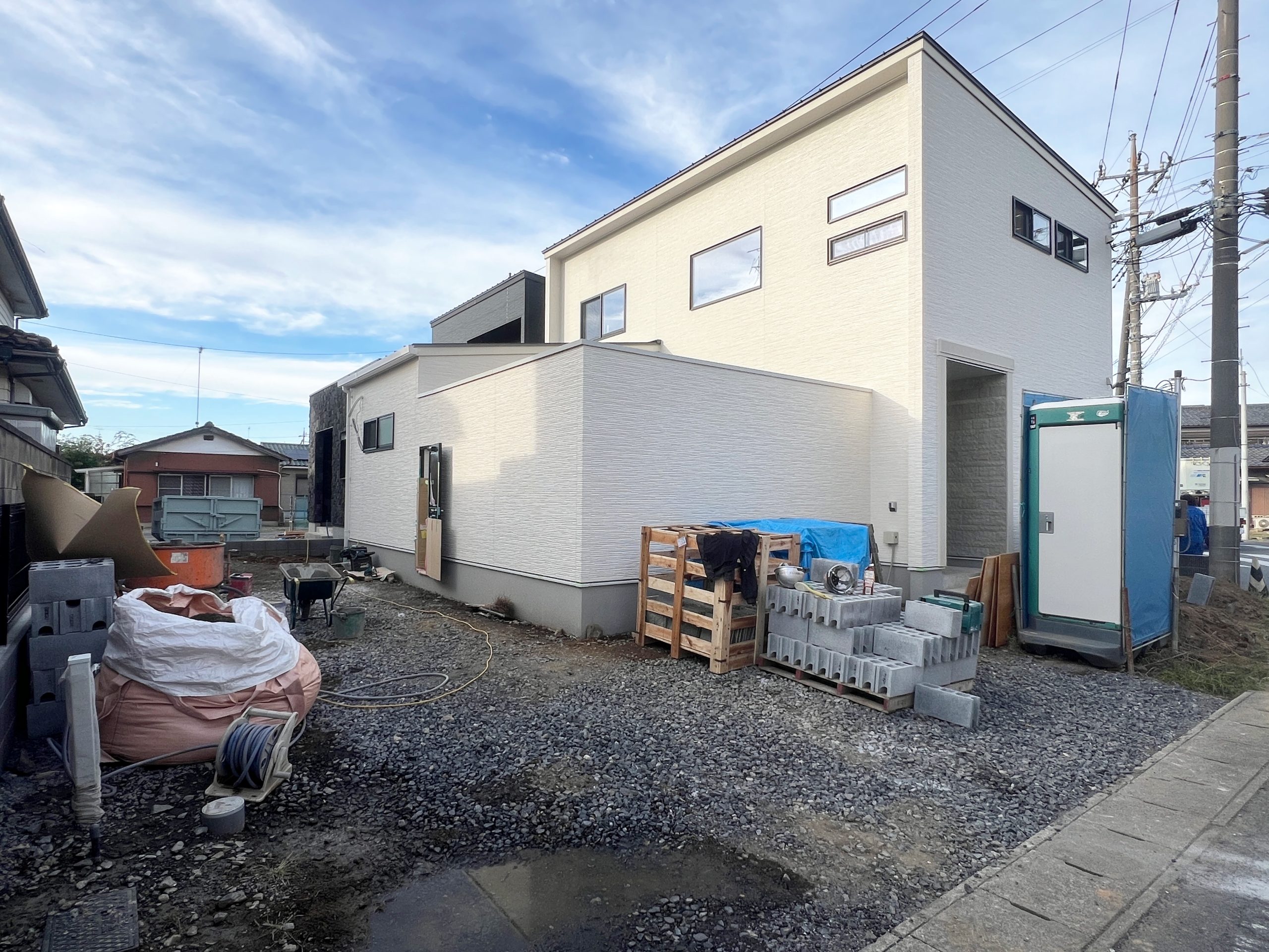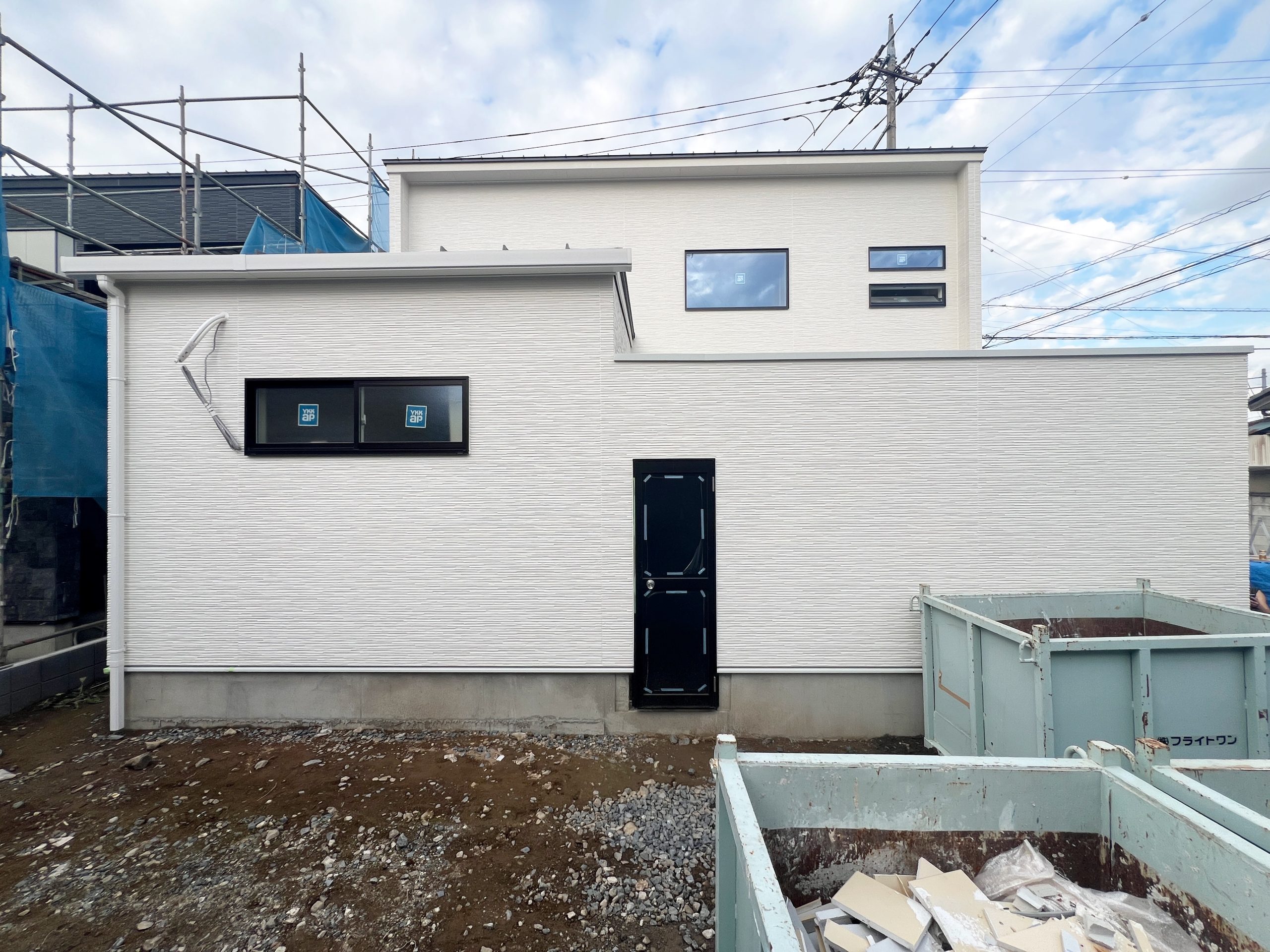 西側の黒い重厚な2階建てはアーバンモダンなデザイン!