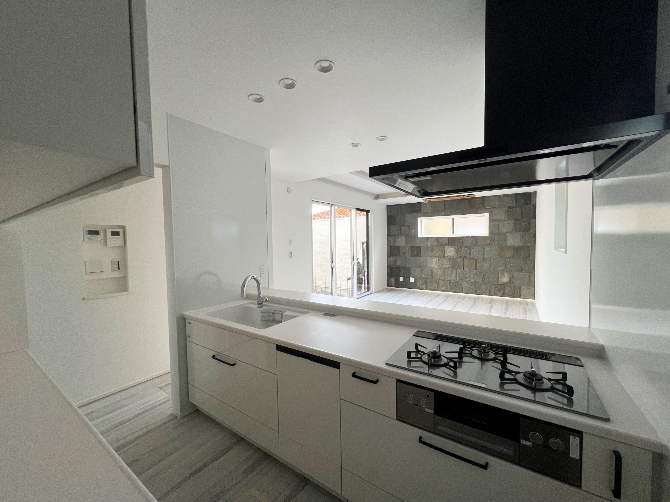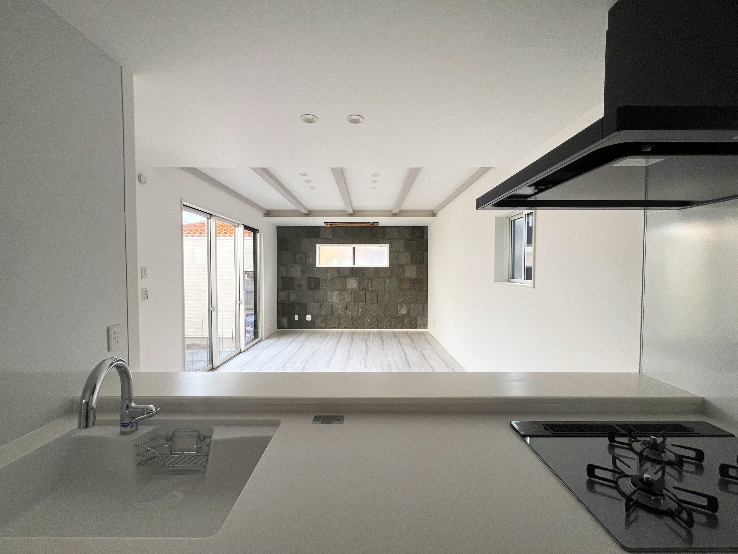 カウンターのついた前面に壁のない対面キッチン。手元は隠せるオープンなキッチンで、コミュニケーションをとりながら家事ができます。 ※画像はイメージの為、実際とは異なります。