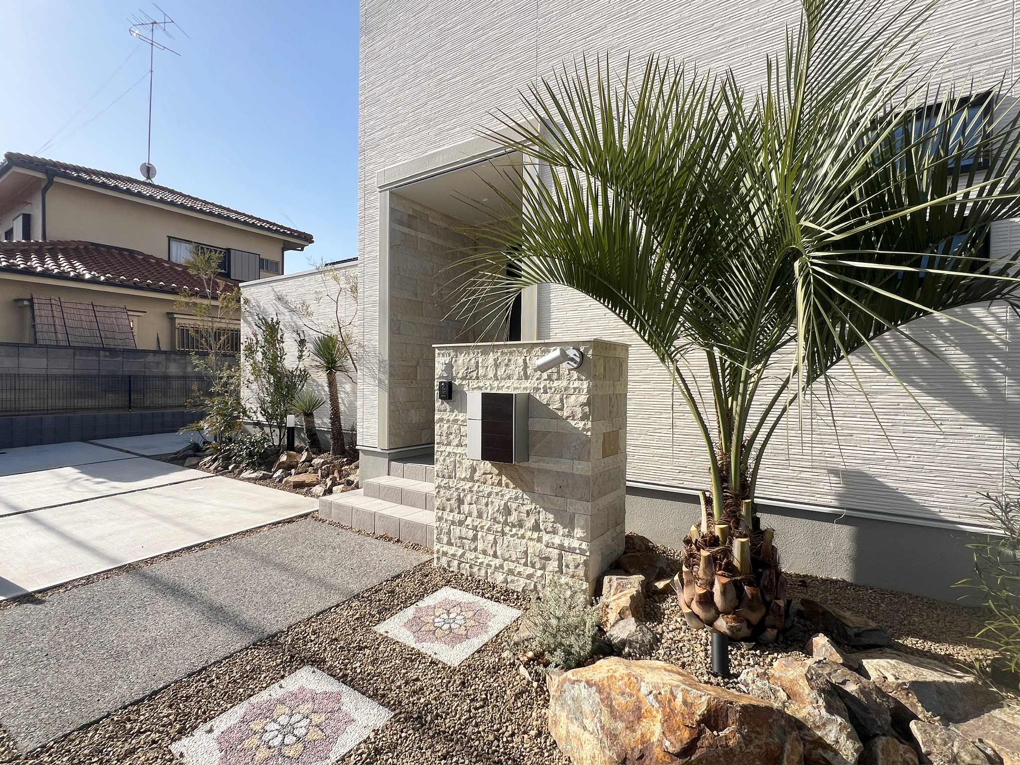 トロピカルな植栽のロックガーデン。3台停められる駐車場もついています。※画像はイメージの為、実際とは異なります。