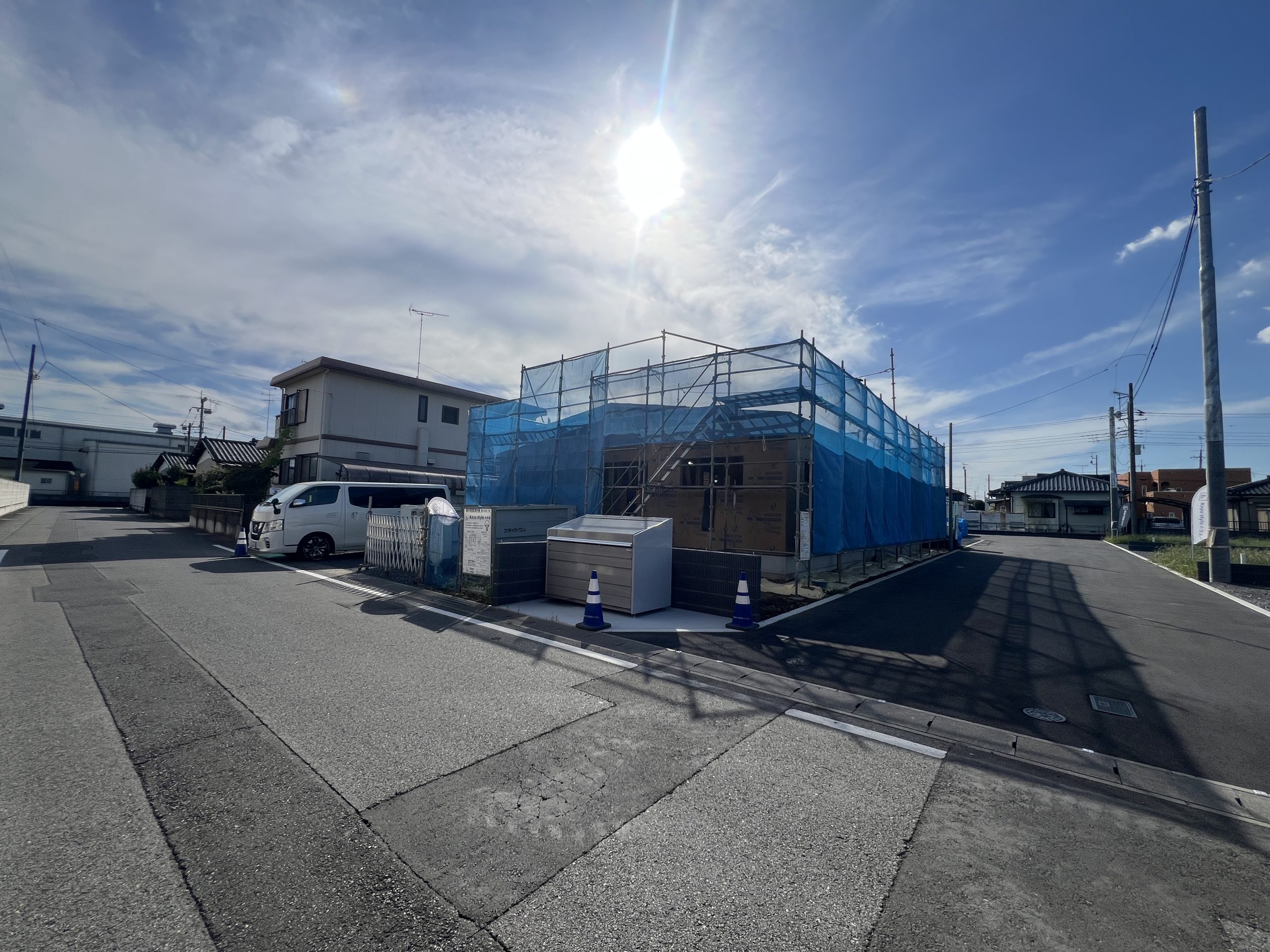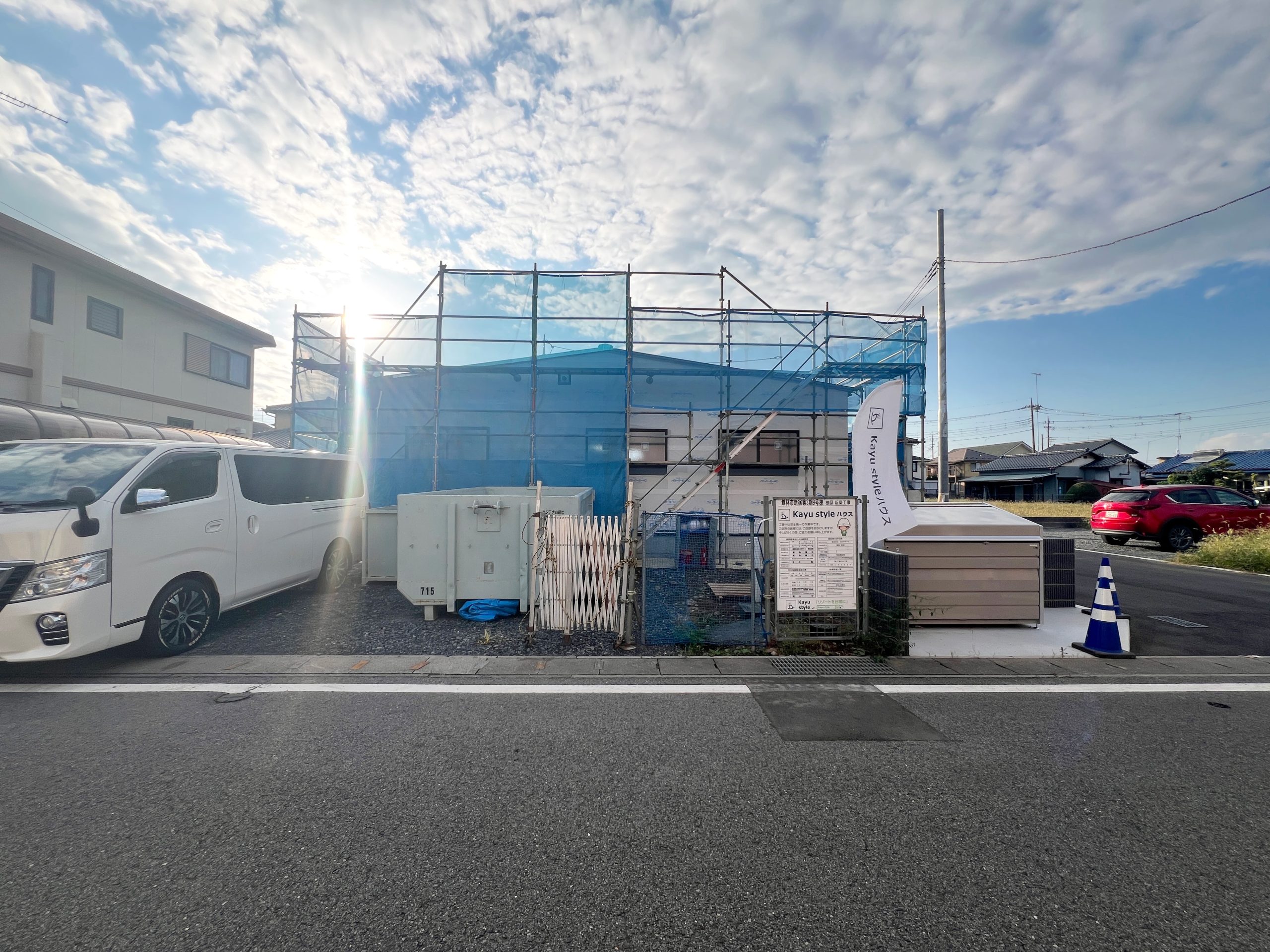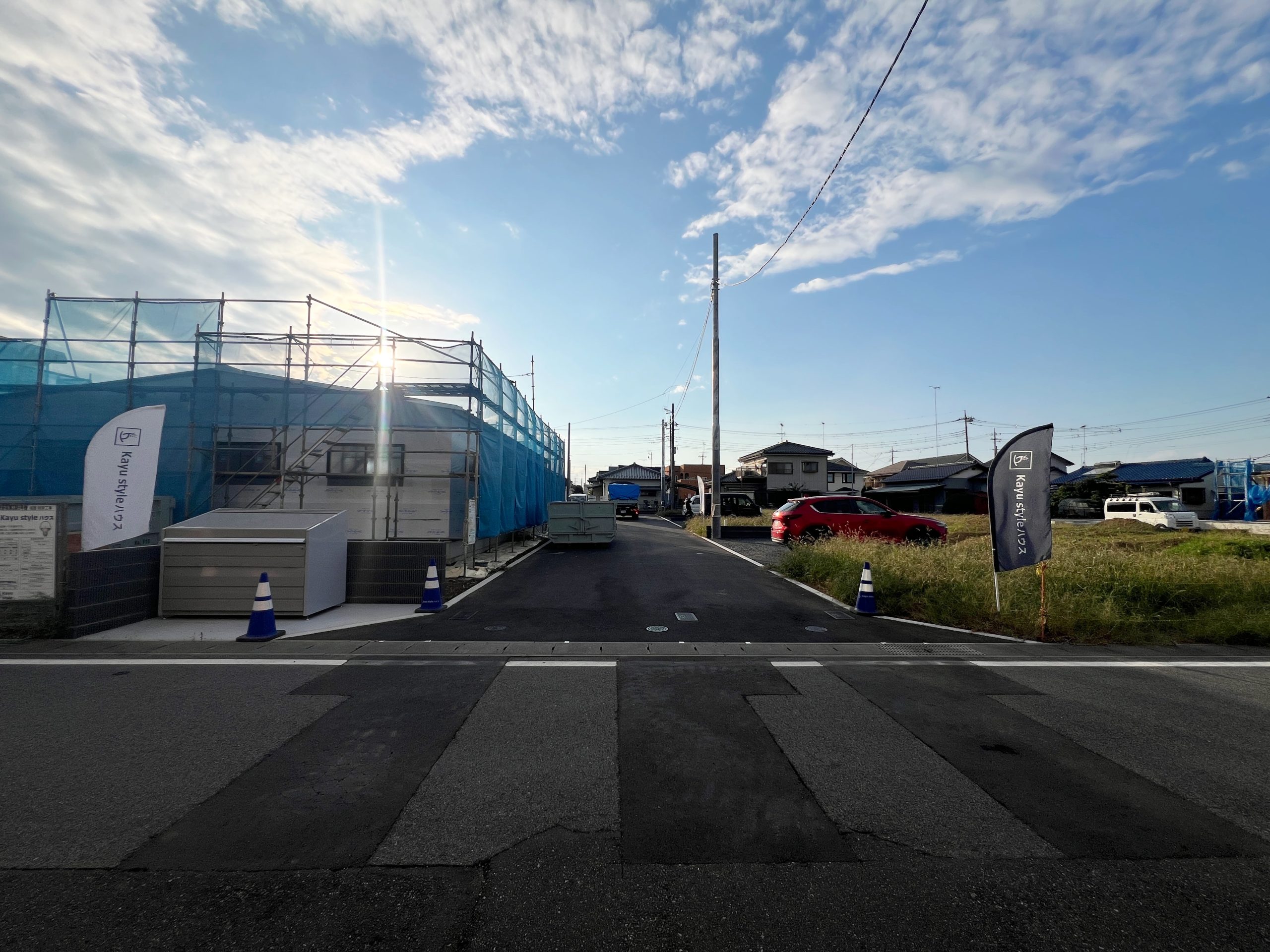 道路沿いの4号棟は、目隠し壁で外からの視線をカットし、プライバシーと開放感がどちらも叶う住宅です。ホワイトとブラウンの外観は可愛らしく、ホワイト基調の内観もカフェリゾートのような明るくおしゃれです。