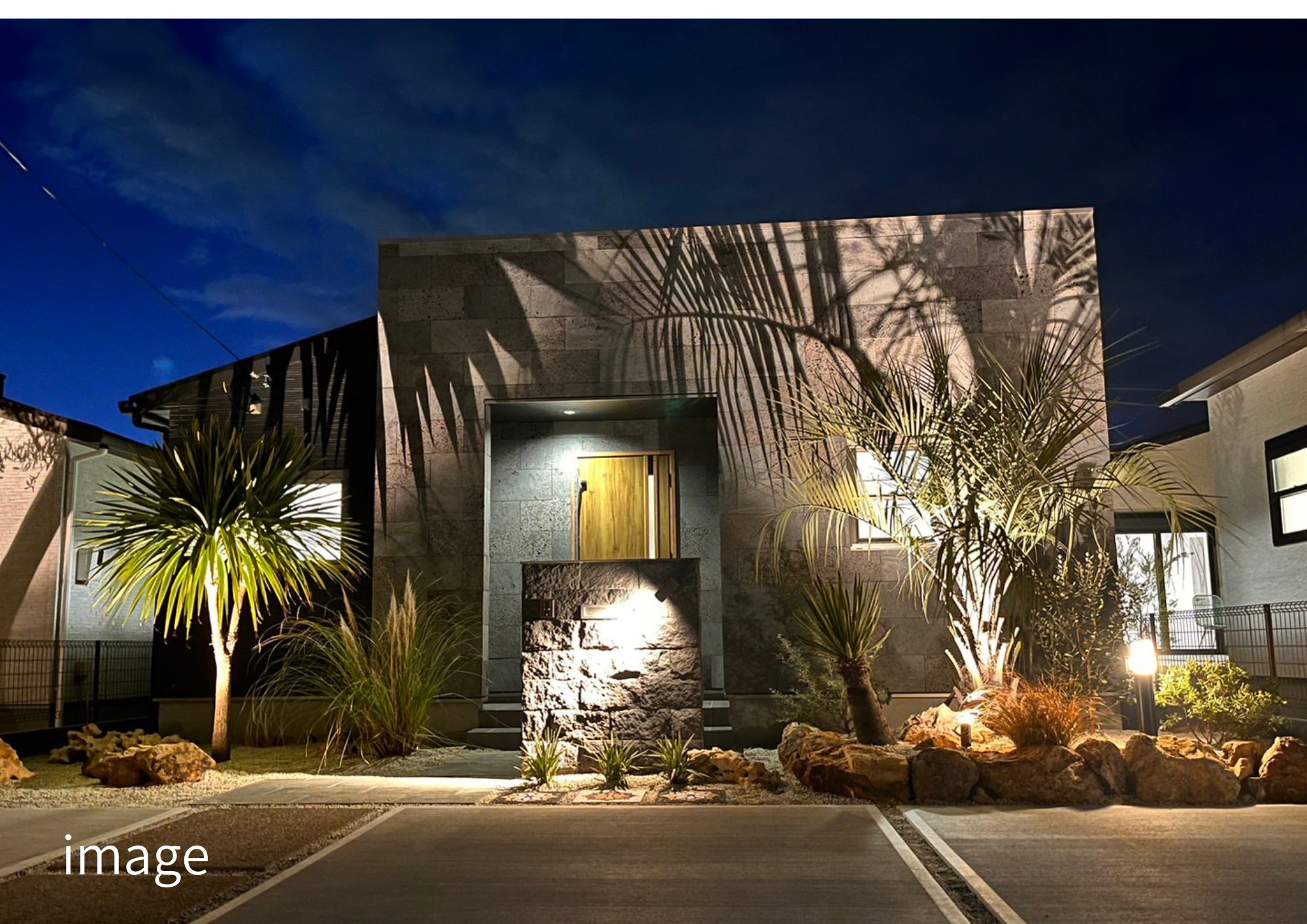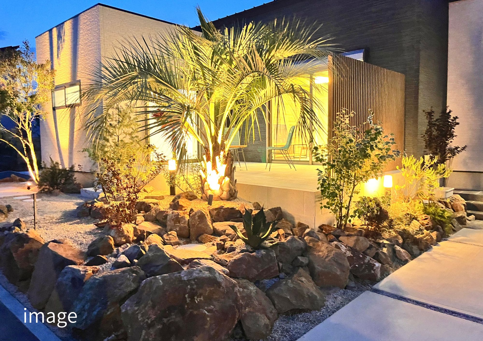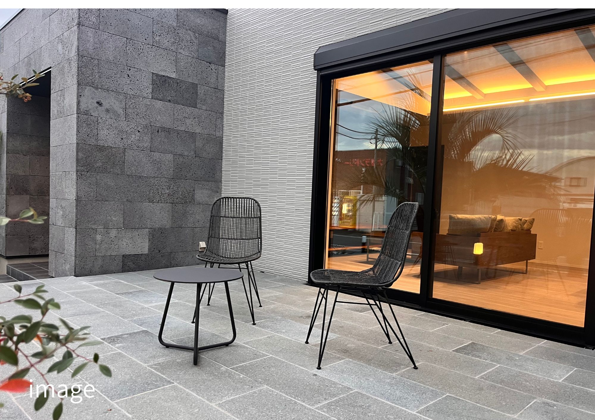リビングからフラットに繋がるテラスには、トロピカルな植栽に囲まれ、リゾートにいるような癒しの空間。 ※画像・パースはイメージの為、実際とは異なります。