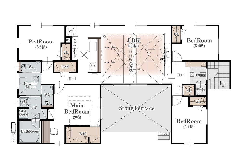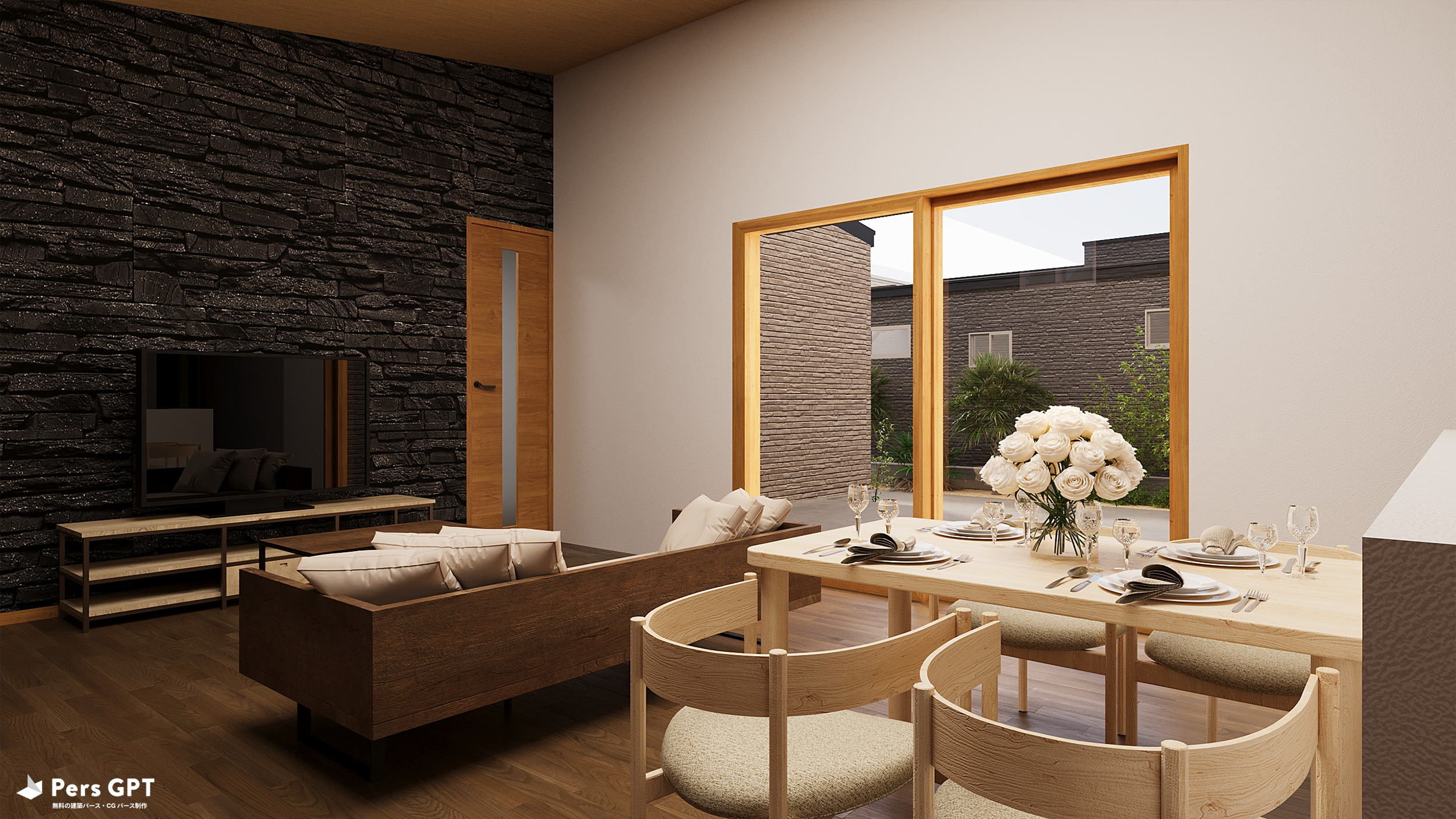 出入り出来る回遊導線になっているため大人数で集まった際や、朝起きて外の空気を浴びたい