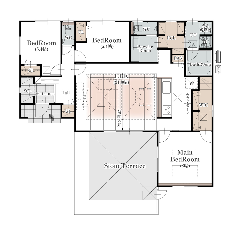 リビング勾配天井や、キッチン回遊導線など人気のポイントを押さえながら、