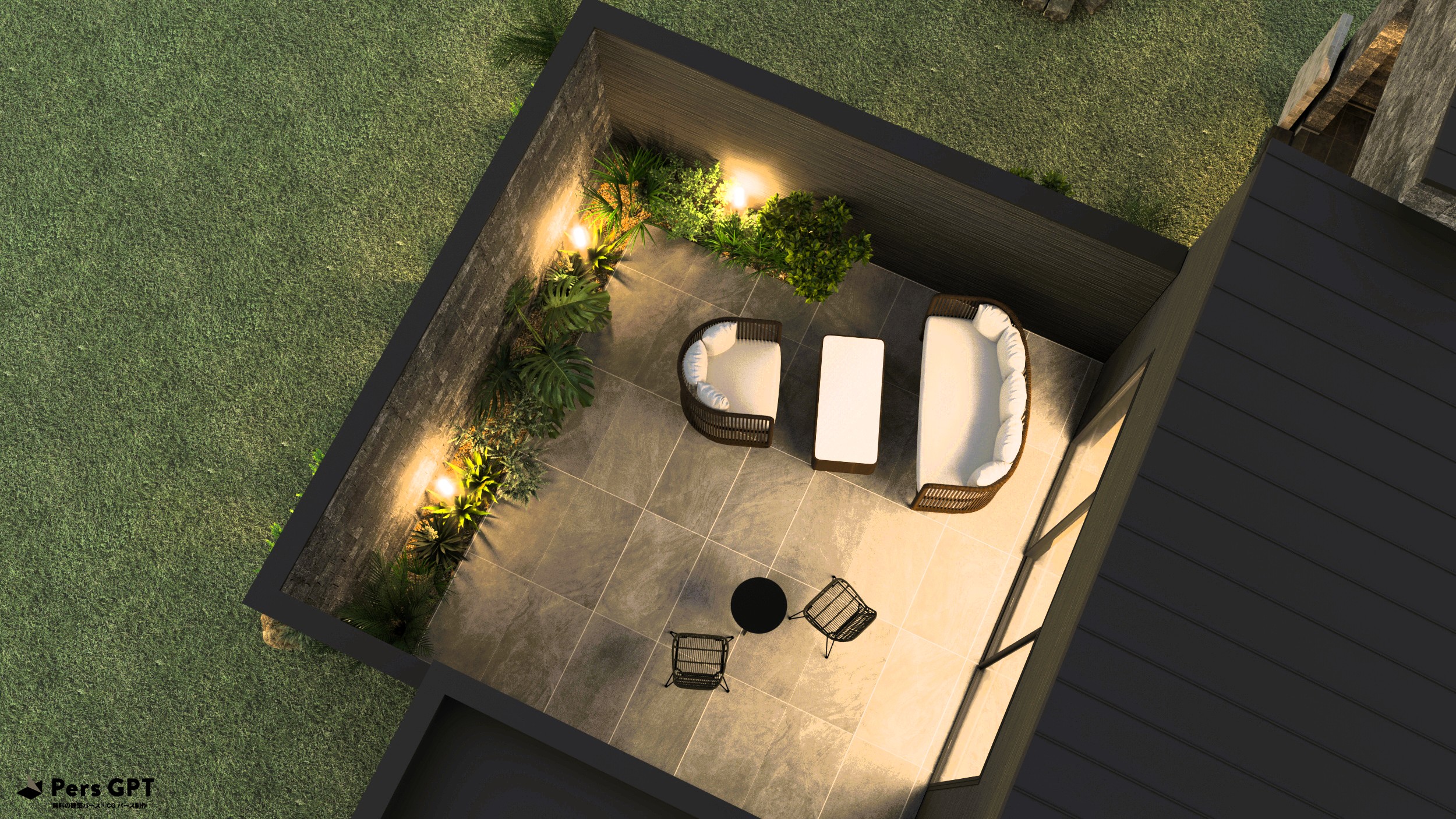 こちらの物件はストーンテラスに視線隠しの囲い壁が付いたり、