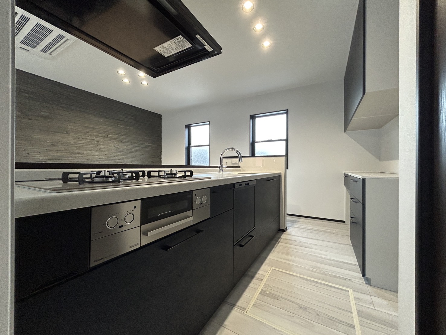 キッチンは回遊できるつくりで動線よくローカウンターで開放的!家族での調理作業も広々お使いになれます。単独の洗面室や、2か所のトイレ等。快適に住生活が営めます!