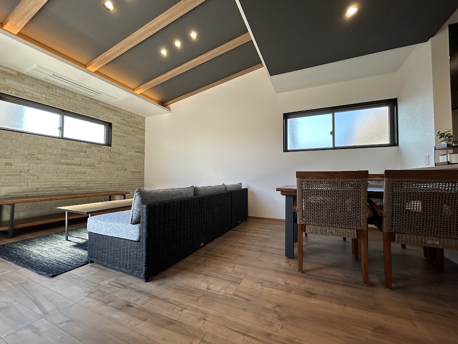 リビングは意匠性を備えた勾配天井とやわらかな光を放つ間接照明、そして統一感のあるインテリアにより、ホテルさながらの心地よい上質な空間が広がります。分譲地仕様により勾配天井は異なりますので詳しくはお問合せください。