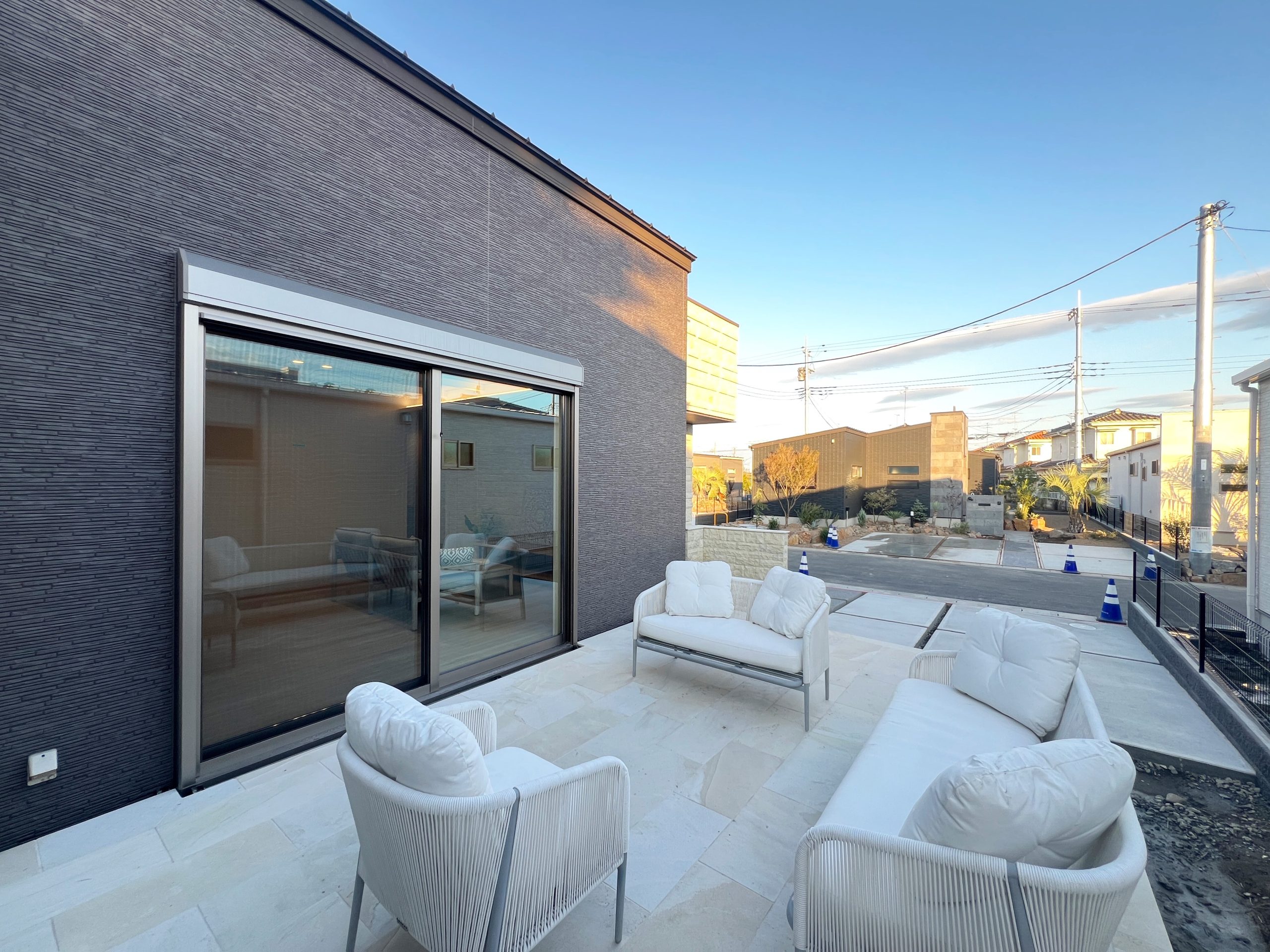 リビングからフルフラットに繋がるテラスは、トロピカルな植栽のドライガーデンが愉しめます。目隠しスクリーンもついていて、外からの視線も遮ります。 ※画像・パースはイメージの為、実際とは異なります。