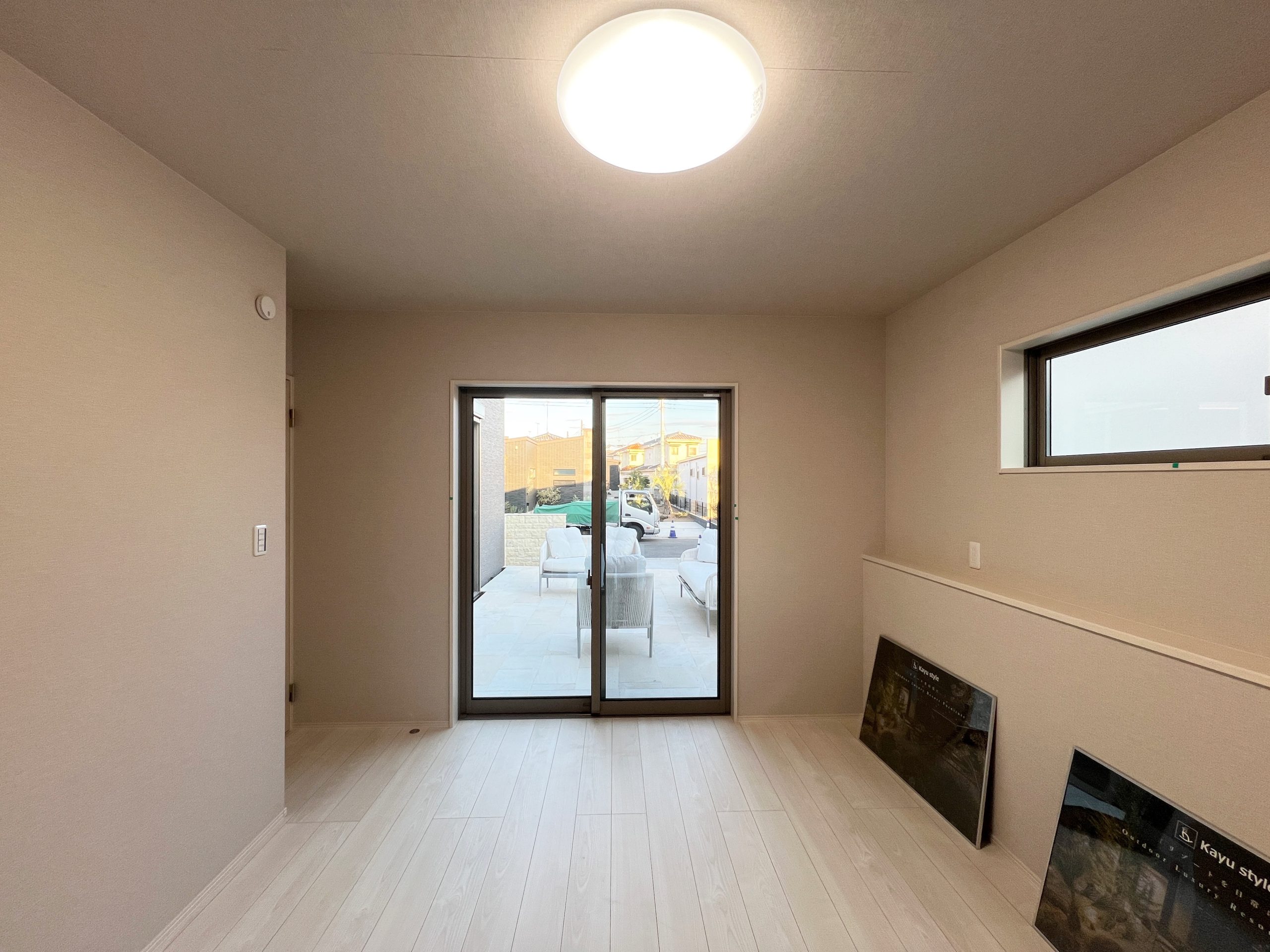 21.7帖の広々LDKはテラスとフラットに繋がり、より広く開放感に溢れます。テラスをコの字型に囲ったデザインなので、中庭のようなプライベート空間に!LDKを中心に、各部屋が隣り合わない位置に配置されているので、家族間のプライバシーも確保できます。